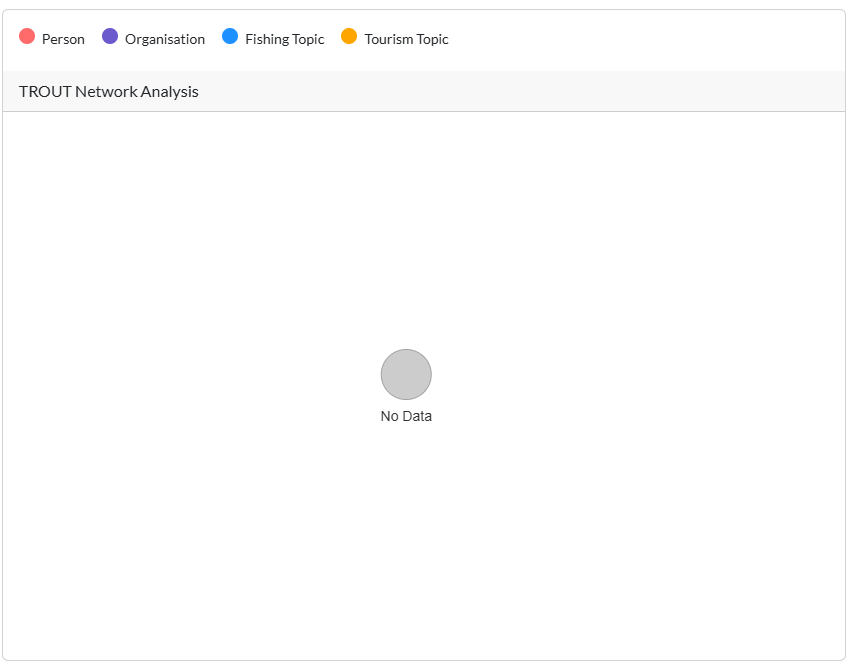 In the original TROUT only view Simone Kat looks entirely neutral: the heat-map shows 0.00 for both Tourism and Fishing, and the TROUT network offers no coloured arrows that would hint at her stance.