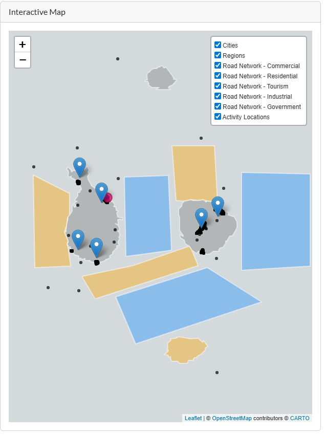 Rows for Simone Kat, Seal and Carol Limpet contain Tourism values, and in Simone’s case a mild negative for Fishing.